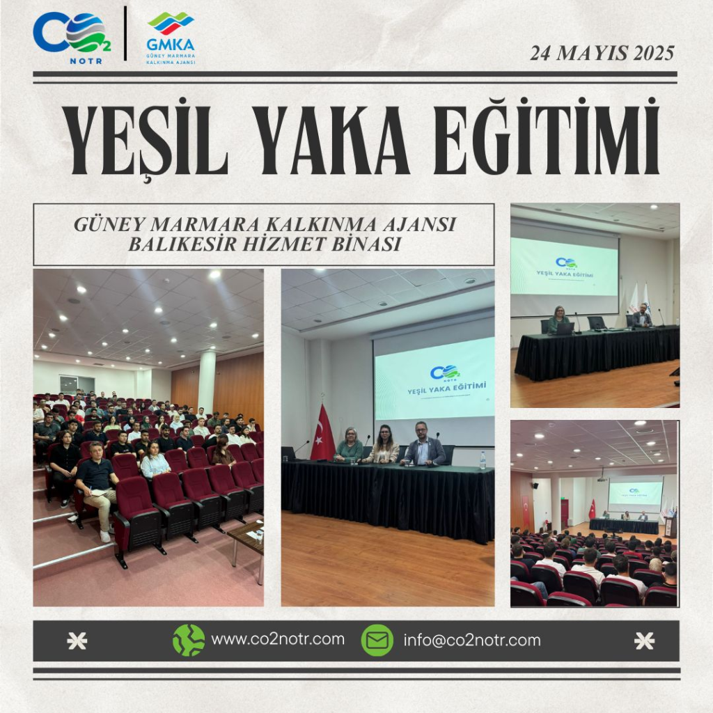 CO2Notr olarak, Güney Marmara Kalkınma Ajansı işbirliğiyle hayata geçirdiğimiz Sertifikalı Yeşil Yaka Eğitimi Programı, 23 Mayıs 2025 tarihinde Çanakkale’de, 24 Mayıs’ta ise Balıkesir’de yoğun bir katılımla tamamlandı.